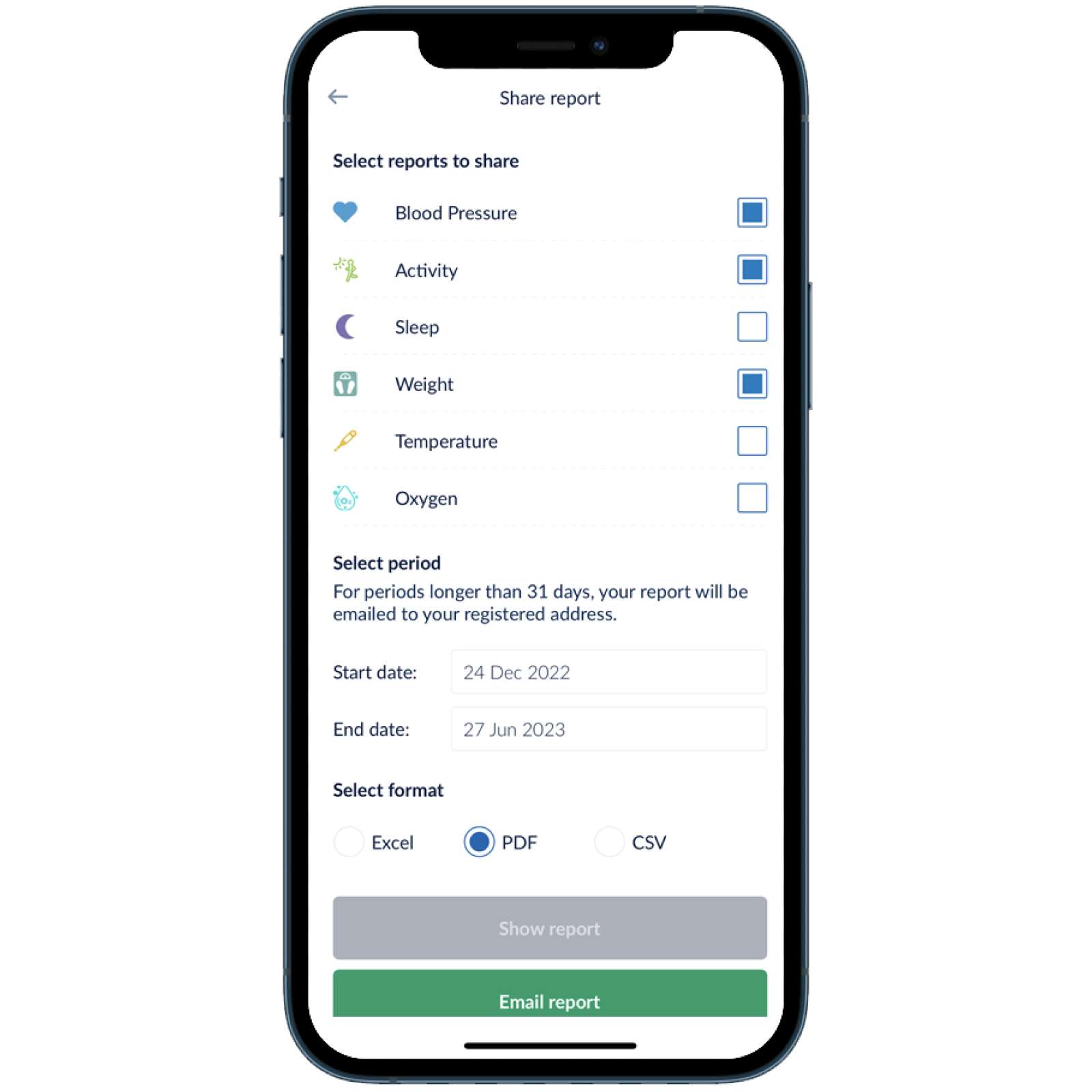 Aplicaţia „OMRON connect” vă ajută să înţelegeţi totul. Puteţi urmări trenduri, vă puteţi monitoriza progresul şi puteţi partaja datele de sănătate sau exporta rezultatele dumneavoastră pentru a le utiliza în alte aplicaţii.