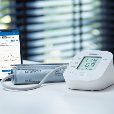 X2 Smart de la OMRON facilitează și mai mult urmărirea de-a lungul timpului a unor măsurători fiabile și precise ale tensiunii arteriale. Tot ceea ce trebuie să faceți este să puneți manșeta pe poziție, să apăsați pe „Start”, iar dispozitivul va măsura valoarea tensiunii arteriale și va stoca automat rezultatul în aplicația OMRON connect. Gata de partajat cu medicul dumneavoastră.